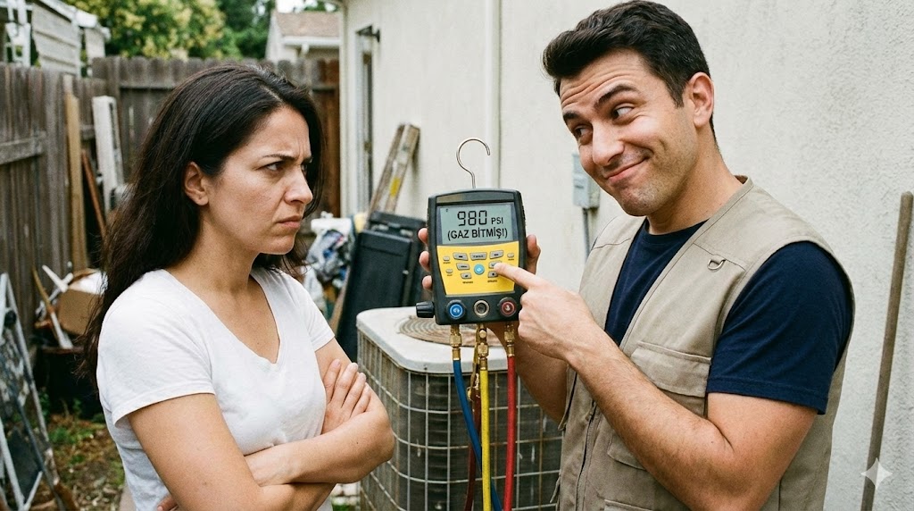 Ucuz fiyatla eve giren korsan servislerin asıl amacı, bakım ücreti değil, uydurma arızalardır. En sık karşılaşılan senaryo şudur: Teknisyen manometreyi bağlar ve "Abi gazın bitmiş, böyle çalıştırırsan motor yanar" der.